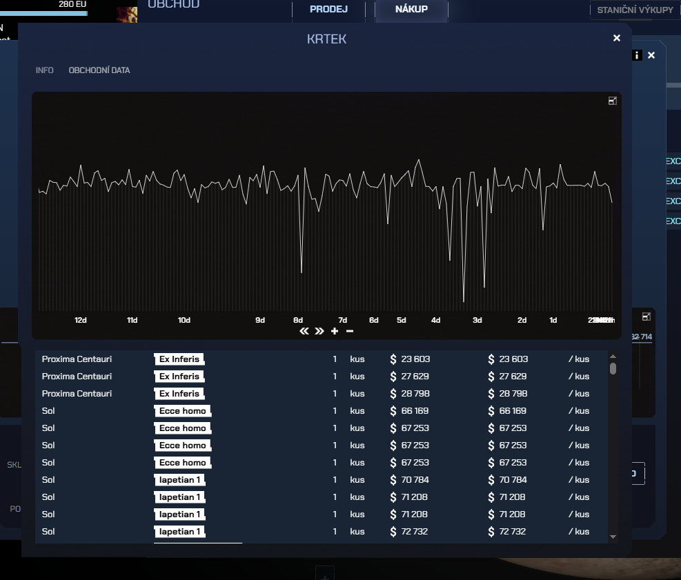 U každé položky lze nyní zobrazit podrobnější historii cen globálně pro celý vesmír a také místa, kde je zrovna na prodej.